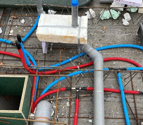 يتم تنفيذ تمديدات السباكة والكهرباء داخل الجدران بدقة، مع استخدام مواسير وأنابيب معتمدة مقاومة للضغط والحرارة. كما نركّب لوحات التوزيع ومخارج الإضاءة والتوصيلات بطريقة آمنة وسهلة الصيانة مستقبلًا.