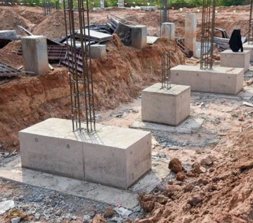 تُعتبر من أهم المراحل، حيث نقوم بصب القواعد المسلحة والأساسات الشريطية أو اللبشة الخرسانية باستخدام خرسانة جاهزة بمواصفات معتمدة، مع فحص الجودة من خلال اختبارات مقاومة الضغط.